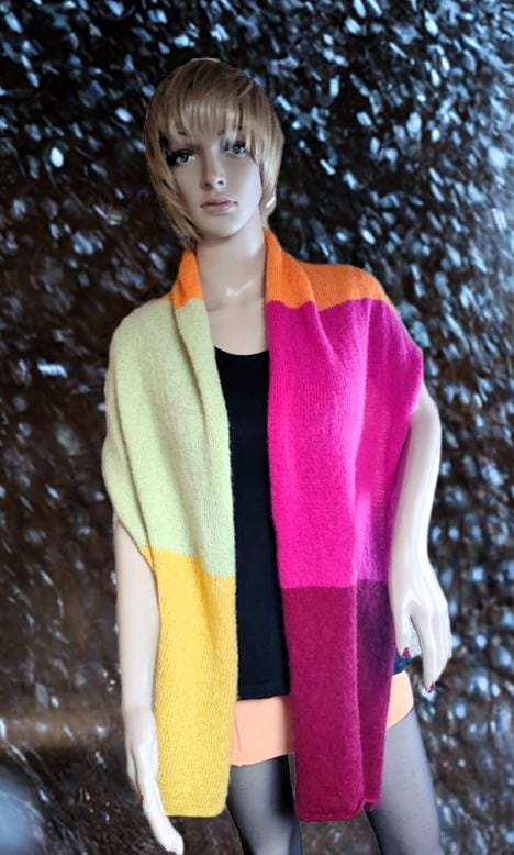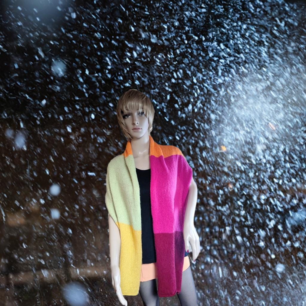 A beautiful hand-knitted Ecopuno scarf with a merino look. A must-have this summer! With a length of approximately 180 cm at the longest side and a diameter of approximately 53 cm, it is versatile, whether worn on the beach with a bikini or on balmy summer evenings. This scarf is a real eye-catcher and adds that certain something to any sweater or dress. It is also ideal for cold autumn days. It captivates with its feminine charm and is particularly soft and fluffy. My recommendation: use wool detergent without fabric softener or hand wash. Please note that slight color variations may occur due to different screen settings, despite our best efforts to ensure perfect image quality.