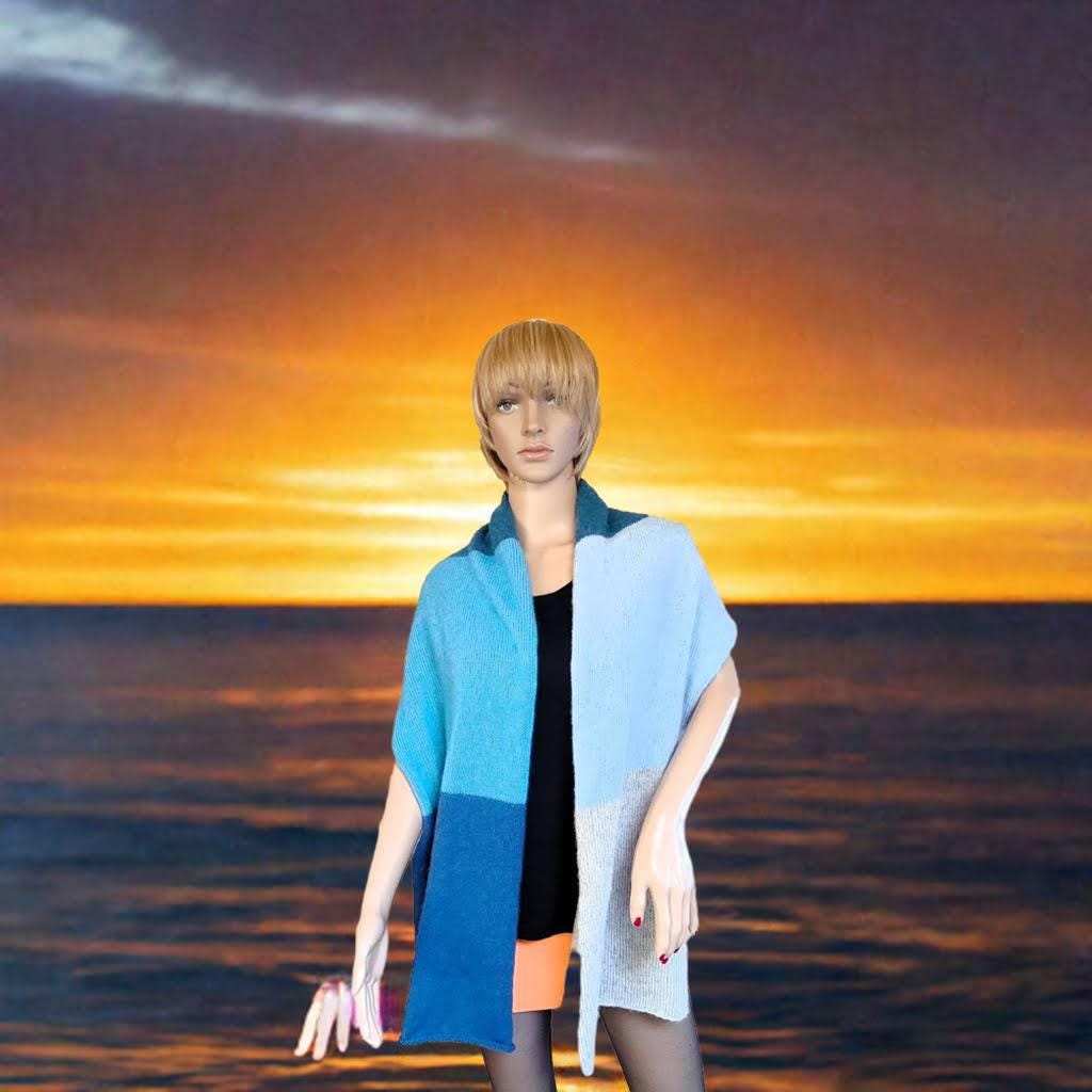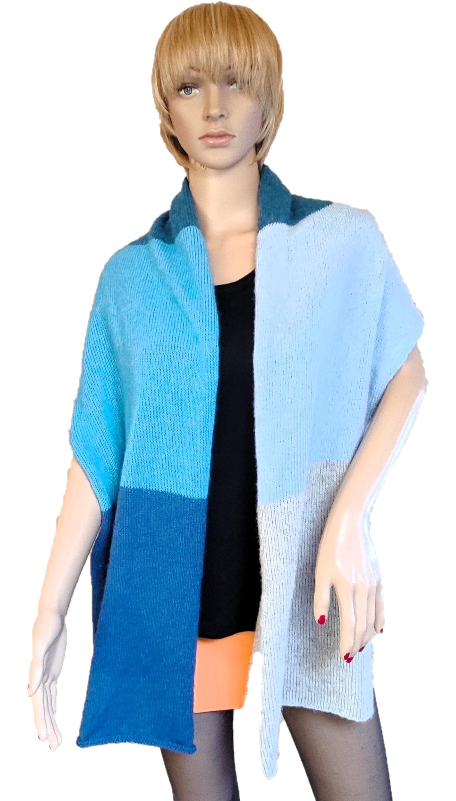 A beautiful hand-knitted Ecopuno scarf with a merino look. A must-have this summer! With a length of approximately 180 cm at the longest side and a diameter of approximately 53 cm, it is versatile, whether worn on the beach with a bikini or on balmy summer evenings. This scarf is a real eye-catcher and adds that certain something to any sweater or dress. It is also ideal for cold autumn days. It captivates with its feminine charm and is particularly soft and fluffy. My recommendation: use wool detergent without fabric softener or hand wash. Please note that slight color variations may occur due to different screen settings, despite our best efforts to ensure perfect image quality.