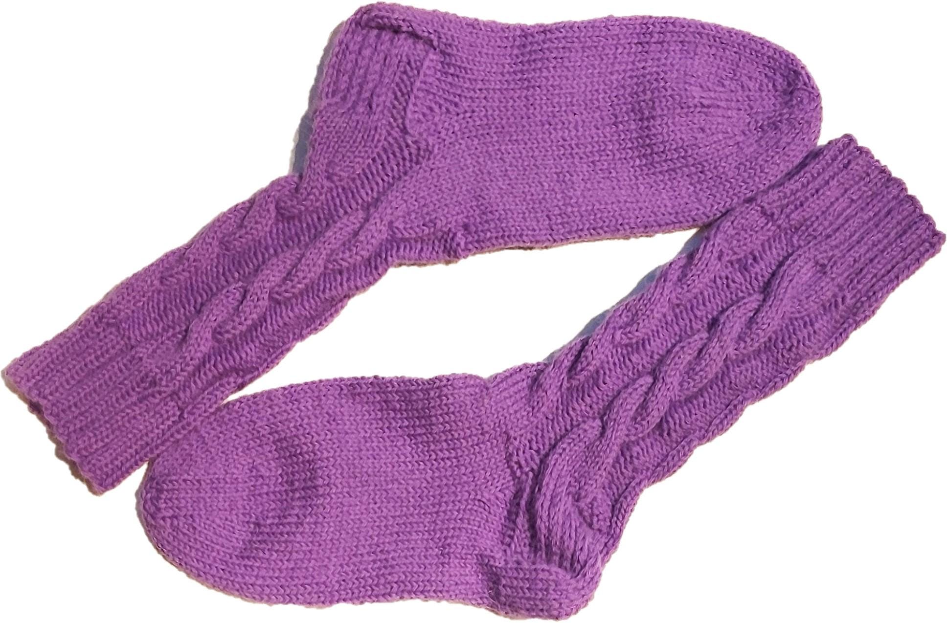 Hand-knitted wool socks / "ALPACA" / size 38-39 / cable pattern in the waistband / women / 6 ply / purple