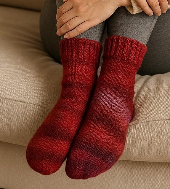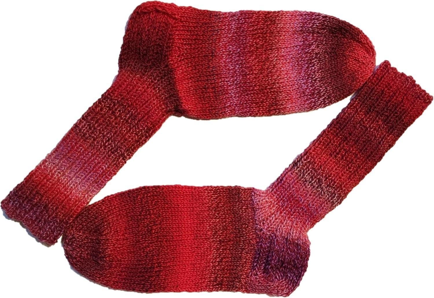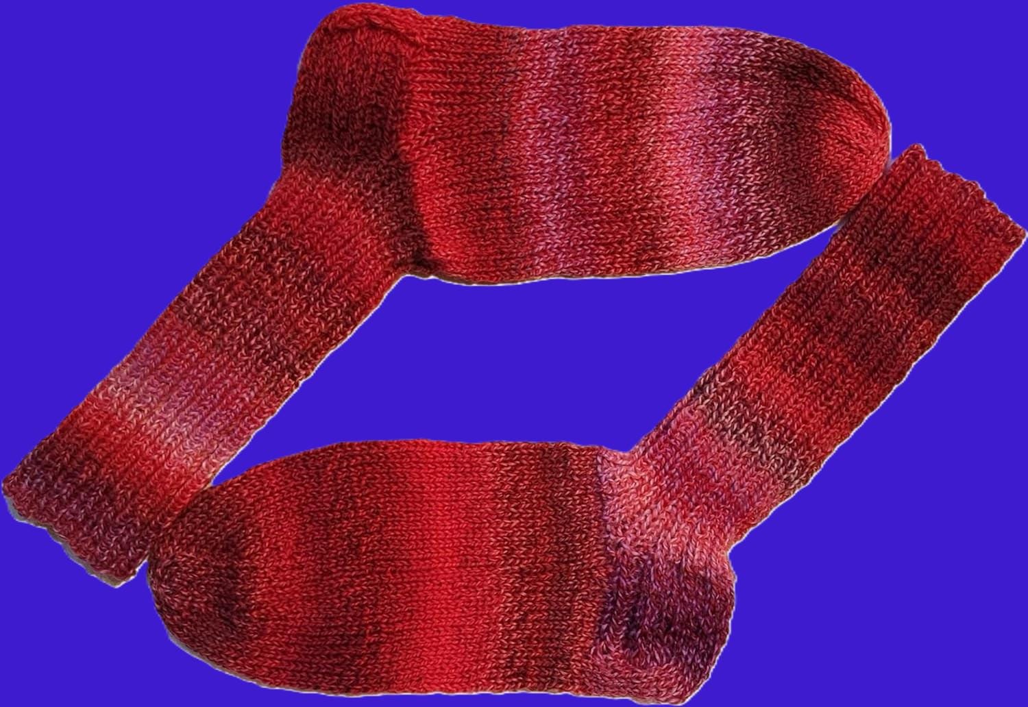 These hand-knitted wool socks made from Schoppel Zauberball wool are the ideal gift—not just for Easter or birthdays. Treat your own feet to this 6-ply wool in the color "Red in a Suit." Size 38-39. Please note that color variations may occur due to camera settings.
