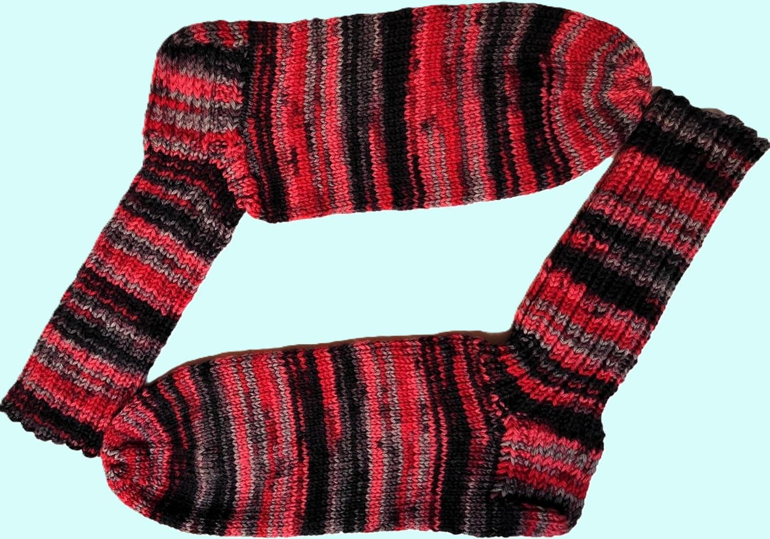 Selling hand-knitted socks in size 44. They're ideal as a gift, not just for Easter or birthdays. Of course, you can also treat your own feet with them. The yarn is 6-ply and from Online - Nevada. Color variations may occur due to camera settings.