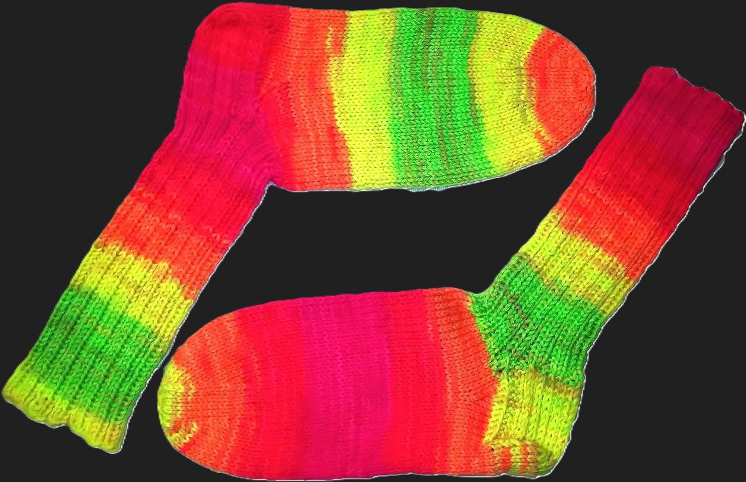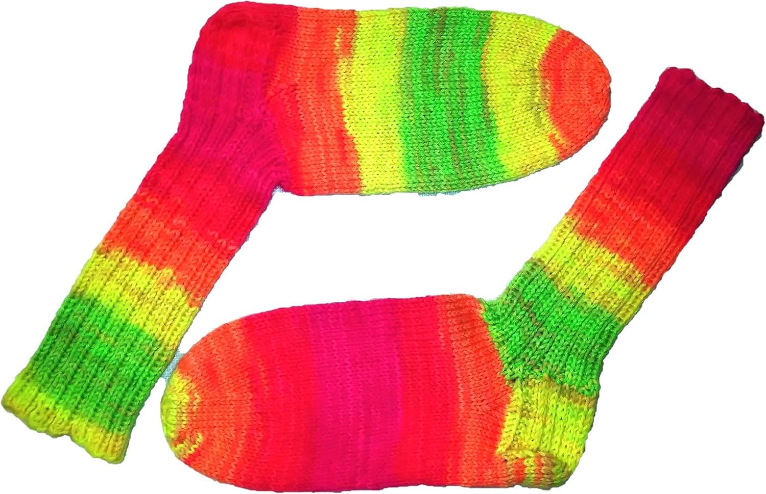 These hand-knitted Regia wool socks are the ideal gift—not just for Easter or birthdays. Pamper your own feet with this 6-ply wool in the color "Fluromania Color." Size is 38-39. Please note that color variations may occur due to camera settings.