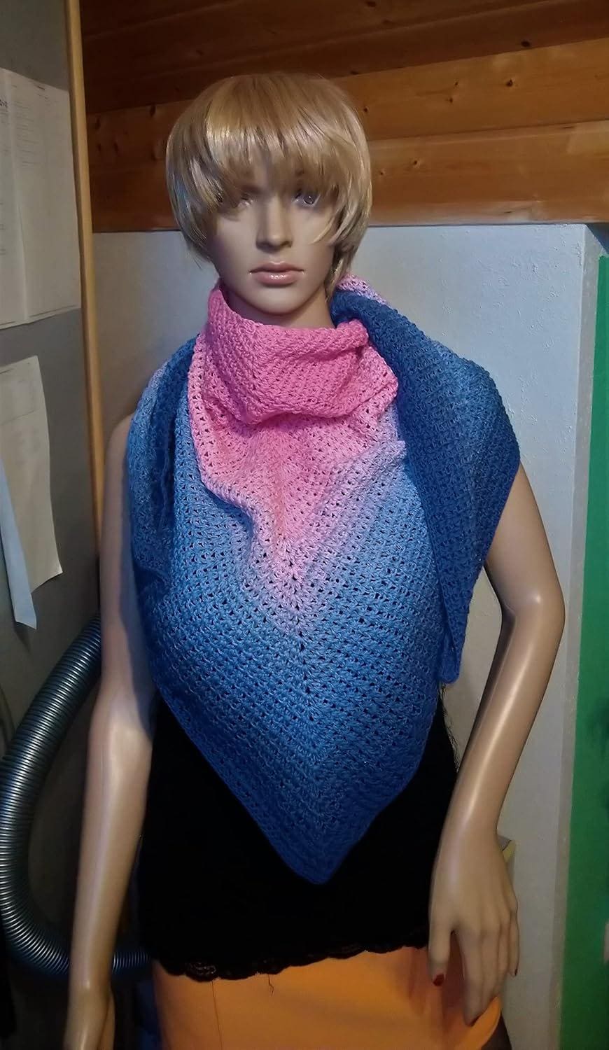 This hand-crocheted triangular scarf with a beautiful shell pattern is versatile. Whether worn over a bikini at the beach or on balmy summer evenings, you'll be sure to turn heads. The scarf measures approximately 150 cm along its longest side and approximately 70 cm to the tip. It's made of cotton/acrylic with a beautiful color gradient and is recommended for hand washing. Please note that slight color variations may occur due to different screen settings. The scarf can be used as a triangular scarf, shoulder scarf, wrap scarf, summer scarf, or shawl.