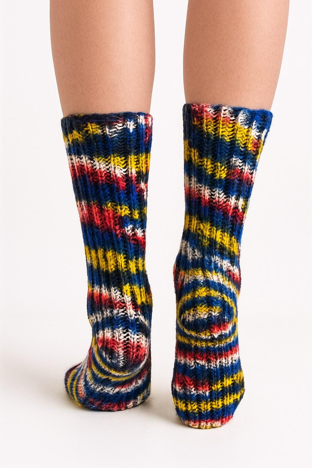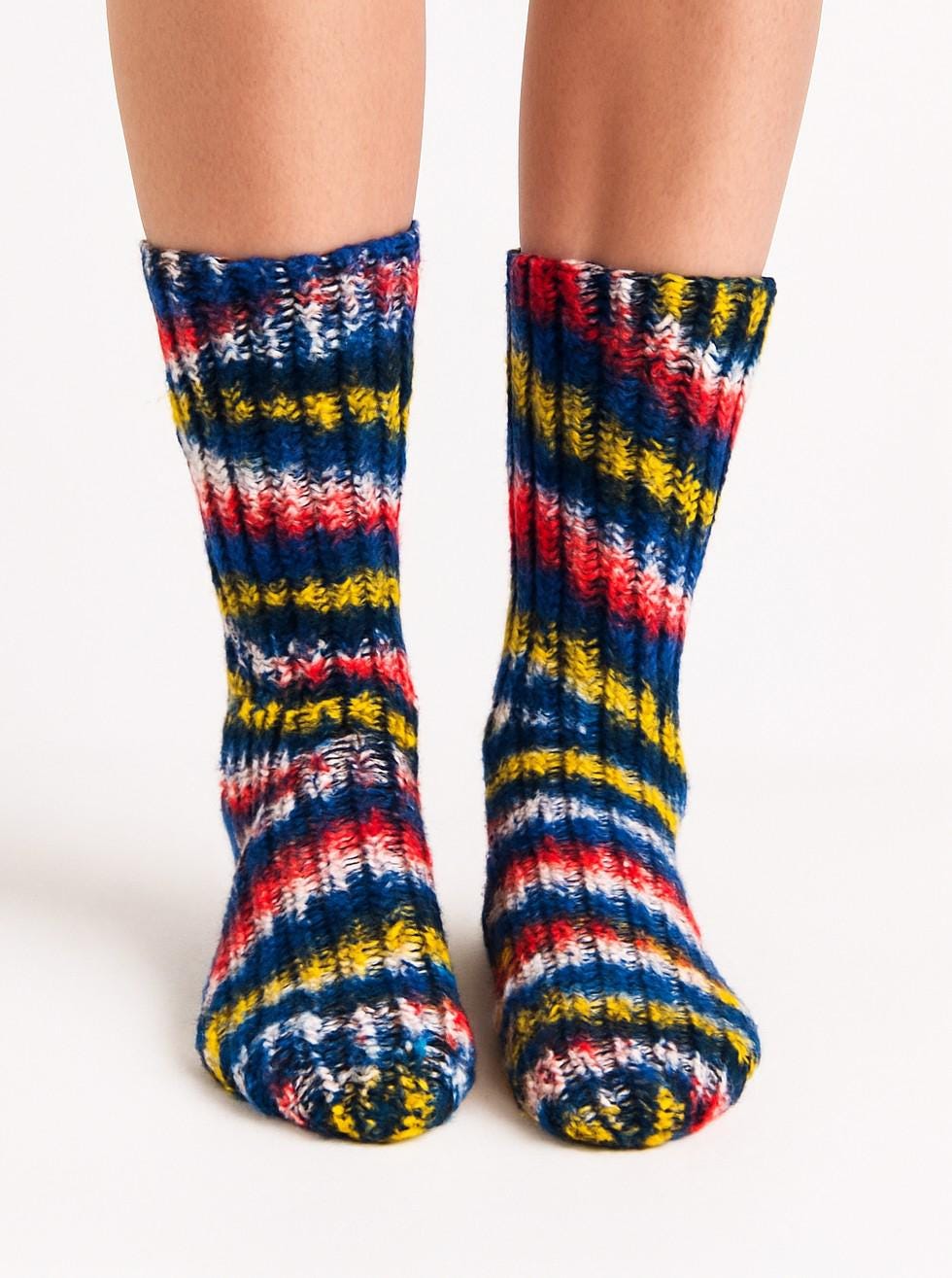 These hand-knitted wool socks made with Schoppel Zauberball wool are the ideal gift—not just for Easter or birthdays. Pamper your own feet with this 6-ply wool in the color "Butchart Gardens." Size 38-39. Please note that color variations may occur due to camera settings.