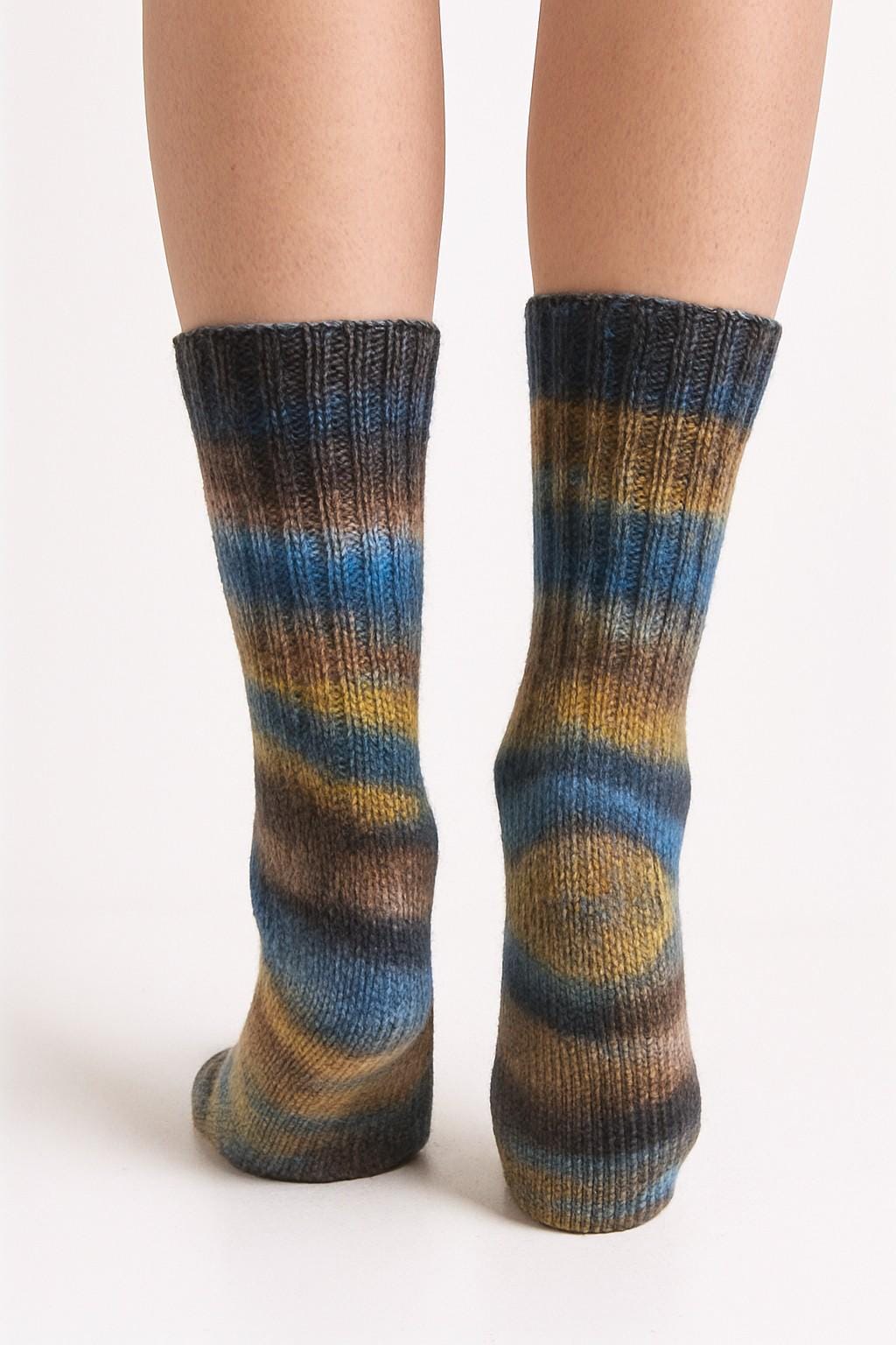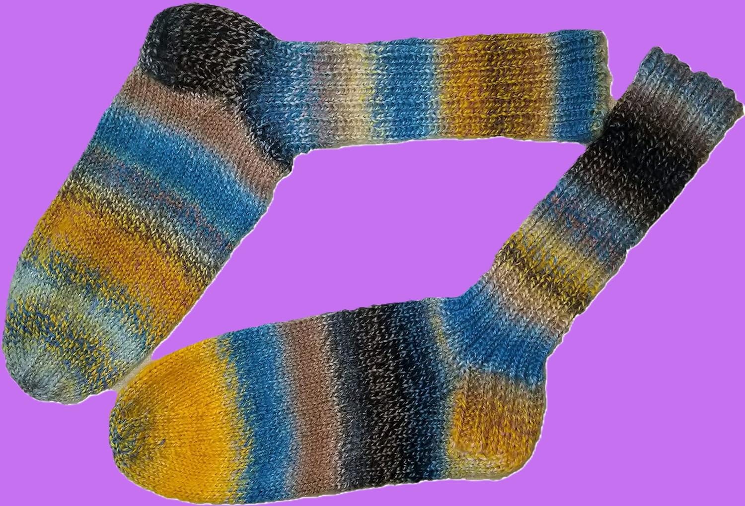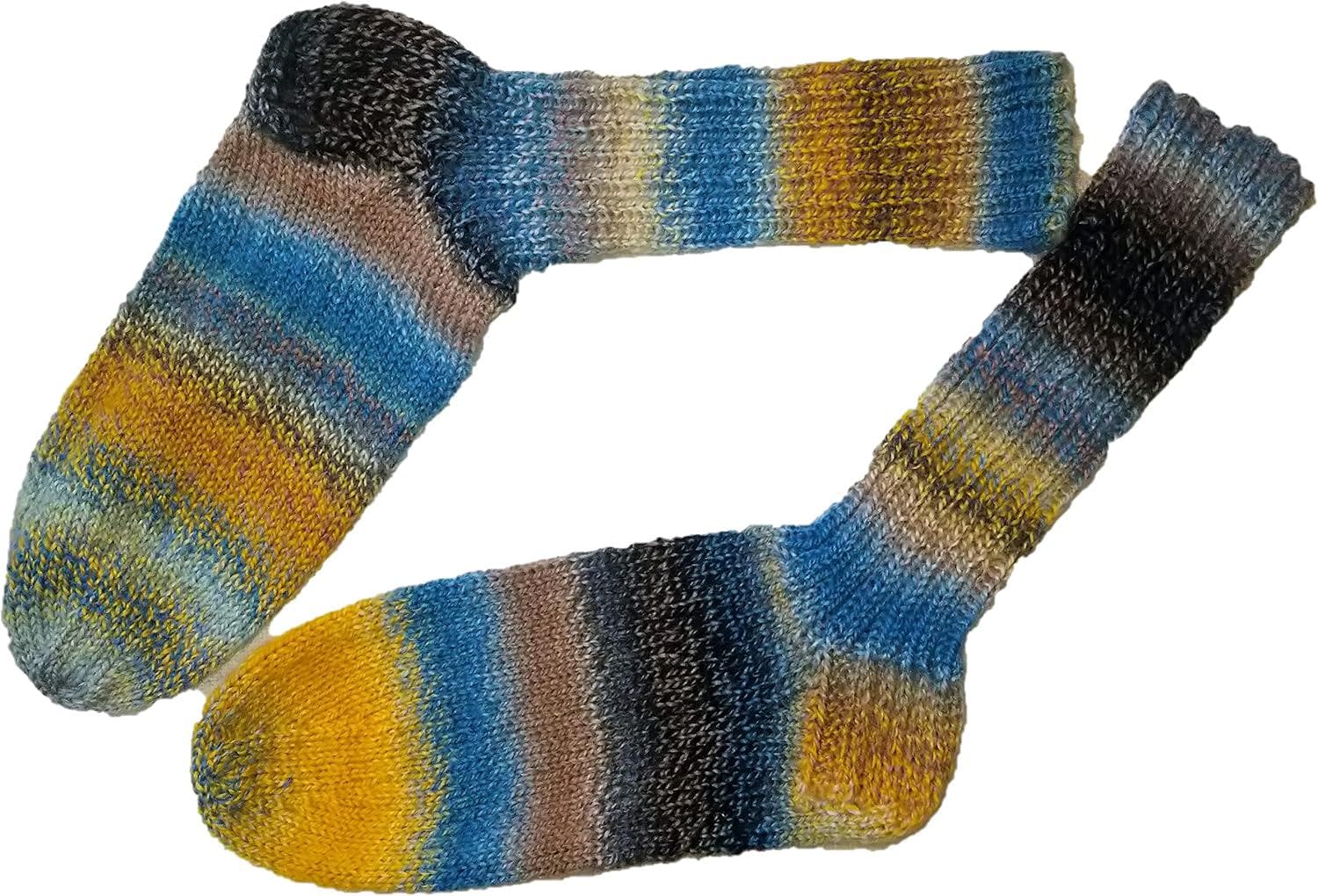 These hand-knitted wool socks made from Schoppel Zauberball wool are the ideal gift—not just for Easter or birthdays. Pamper your own feet with this 6-ply wool in the color "Hourglass." Size 38-39. Please note that color variations may occur due to camera settings.