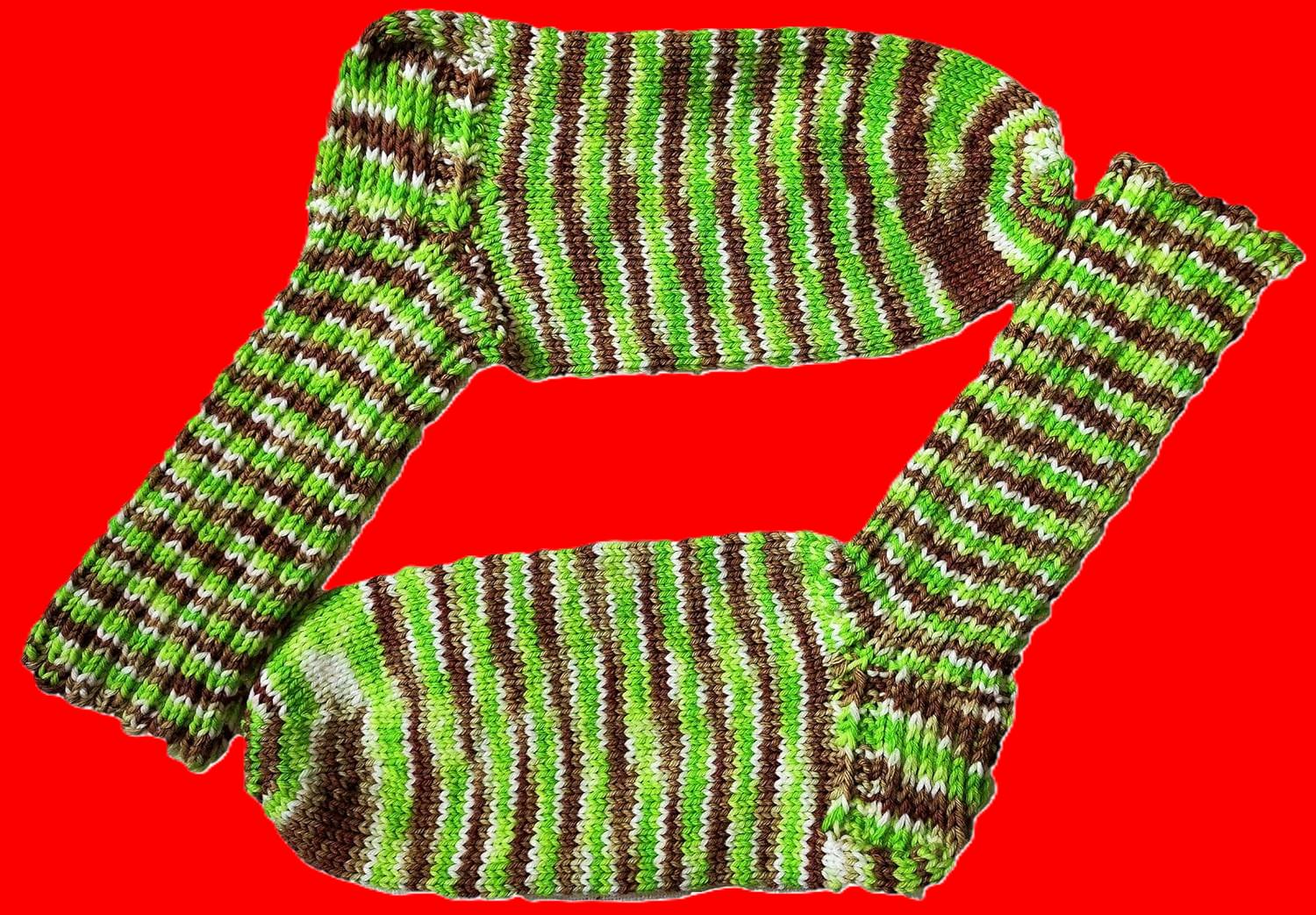 Selling hand-knitted socks in size 42. They're ideal as a gift, not just for Easter or birthdays. Of course, you can also treat your own feet with them. The yarn is 6-ply and hand-dyed. Color variations may occur due to camera settings.
