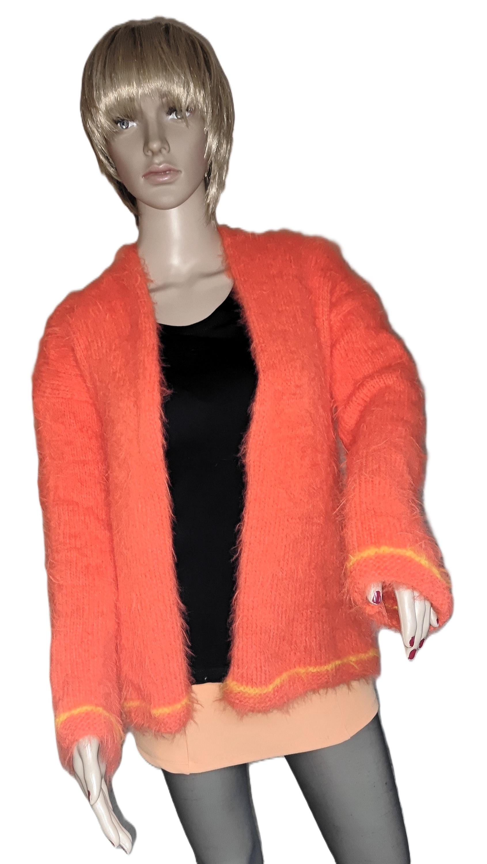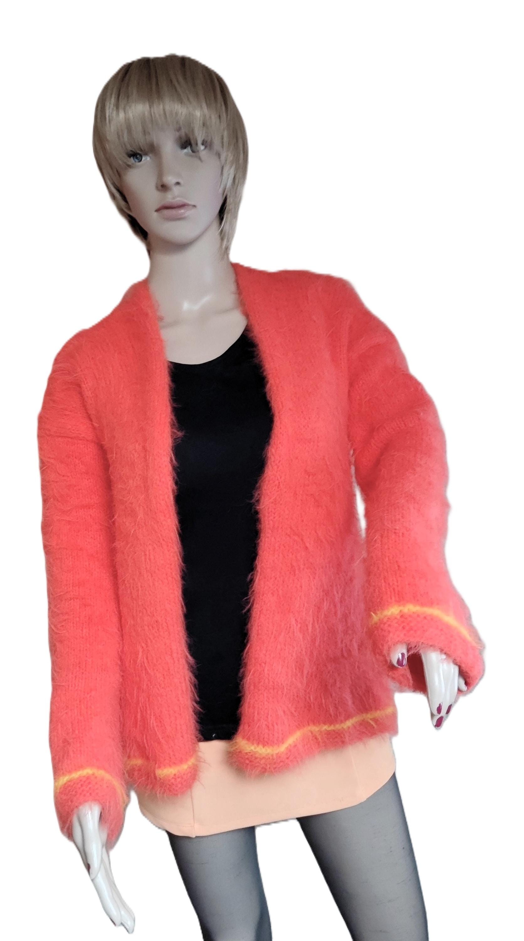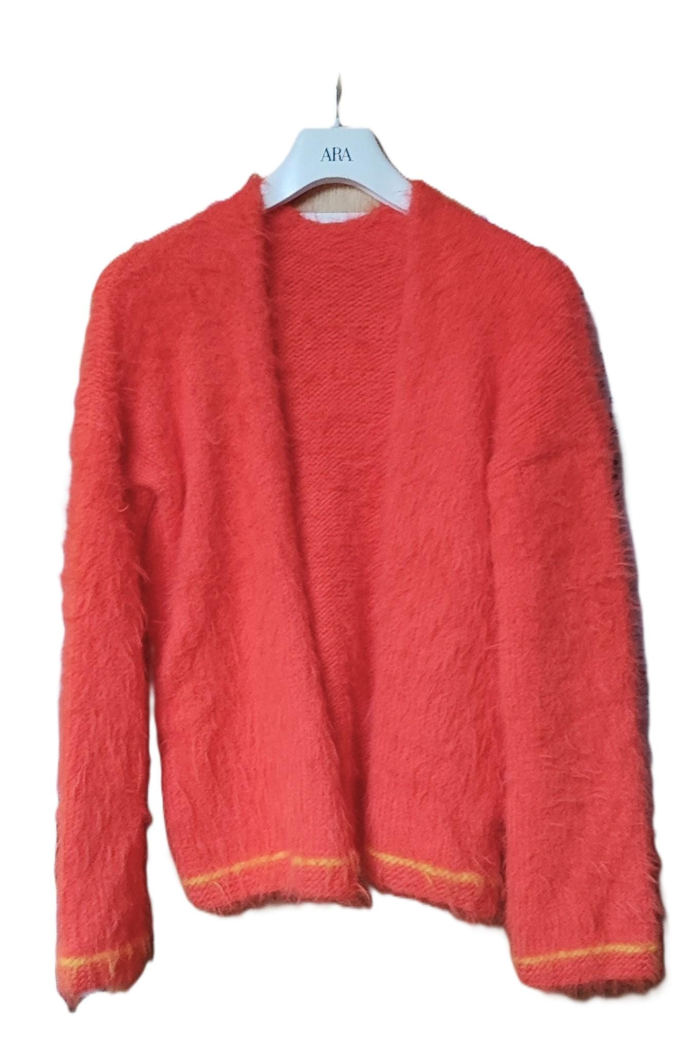 A beautiful hand-knitted wool cardigan by Lana Grossa. A must-have for chilly days. This cardigan is a real eye-catcher and adds a special touch to any sweater or dress. It's also ideal for cold evenings. It captivates with its feminine charm and is particularly soft and fluffy. Please note that slight color variations may occur due to different screen settings, despite our best efforts to ensure flawless image quality.