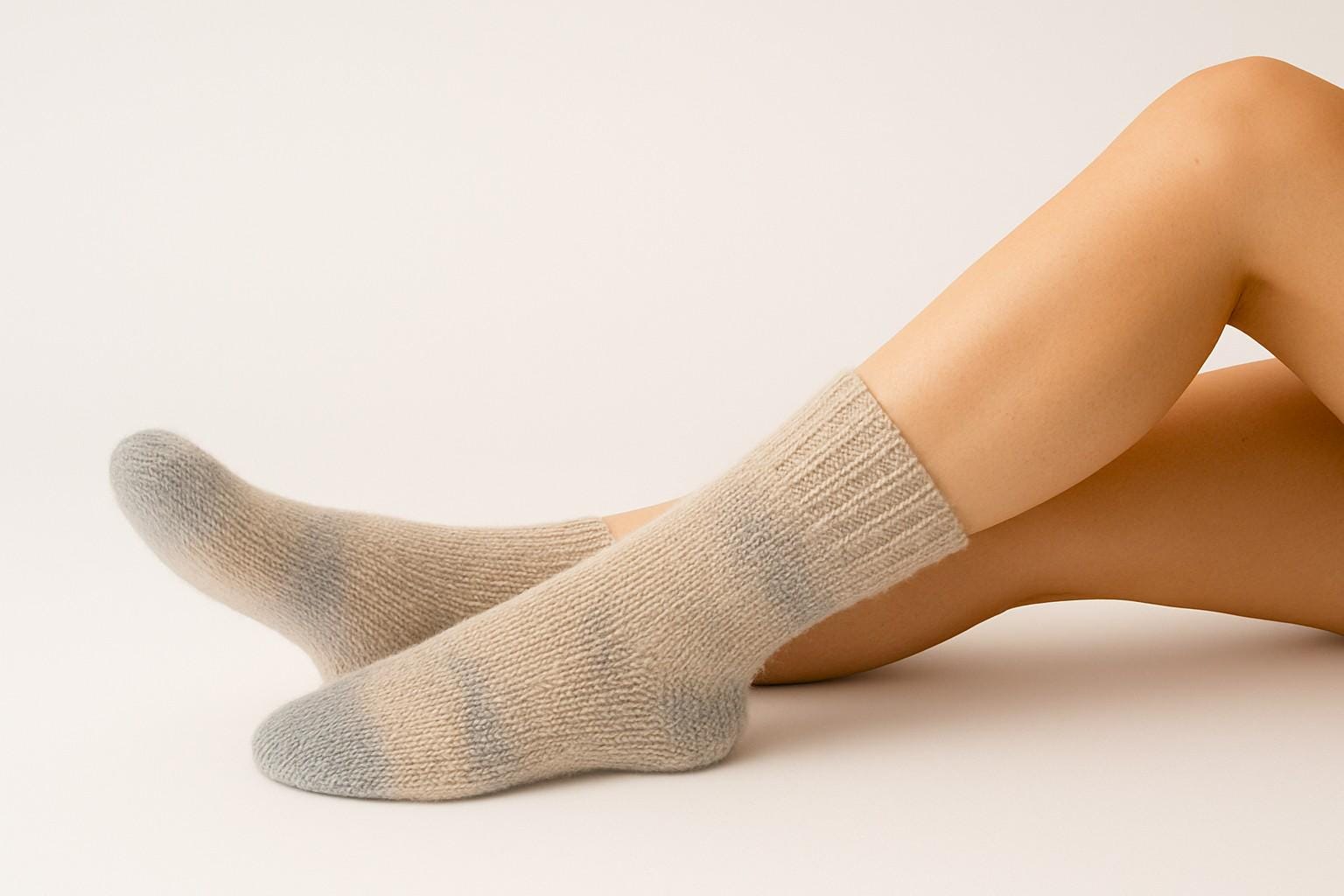 Socks are hand-knitted. Depending on the order volume, they take 2-3 weeks to complete.