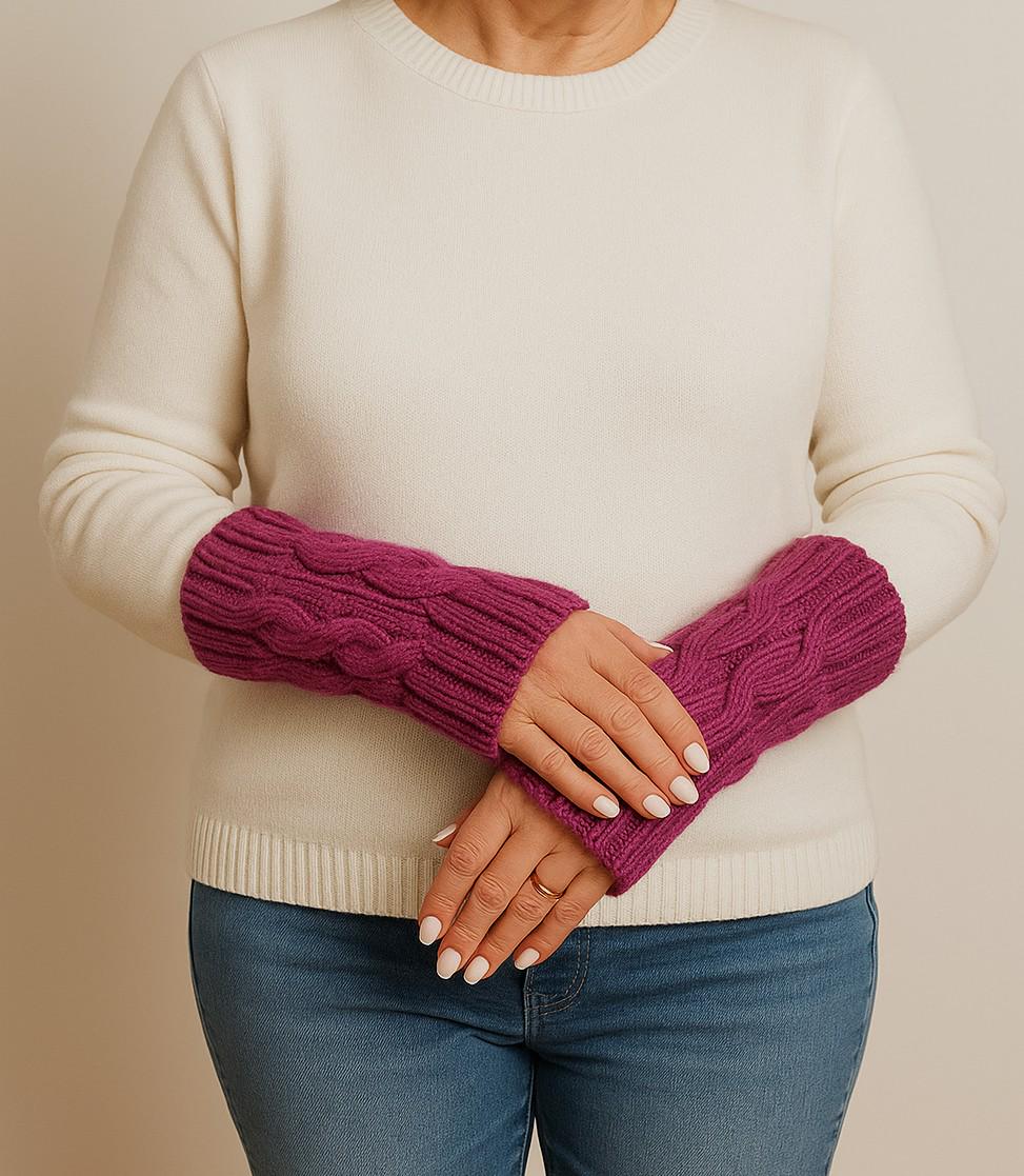 The classic cable knit pattern in pink/fuchsia brings color to gray days and makes every outfit an eye-catcher.